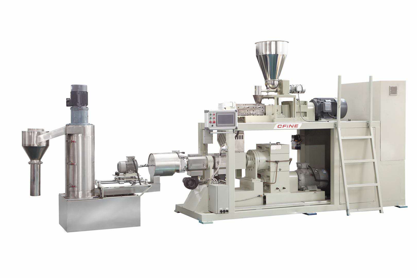 7:本機前段是通過密封的情況下工作,有效的解決了色粉、高填充中的粉末飛揚,使得車間衛生更好的保持清潔。